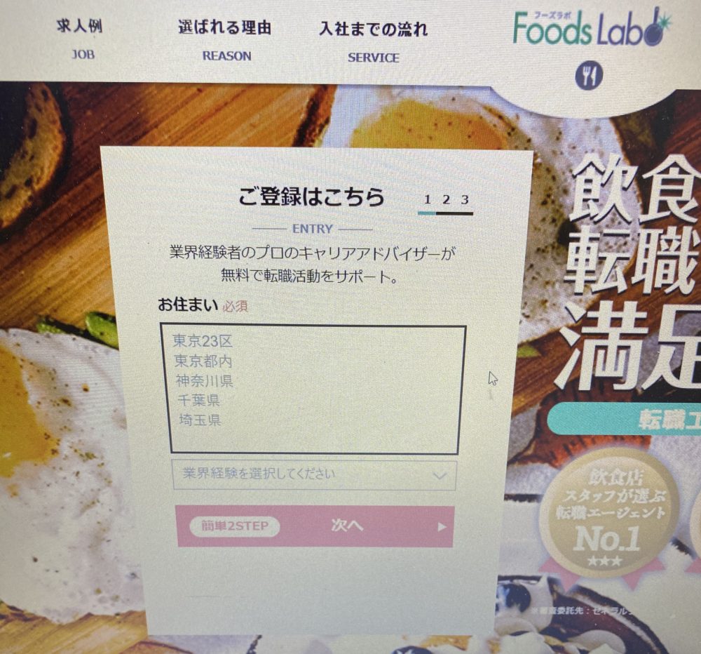 他のサイトでは電話の相談も出来ましたが、フーズラボは「基本的に対面式の面談」を求められ、面談場所は東京と大阪…