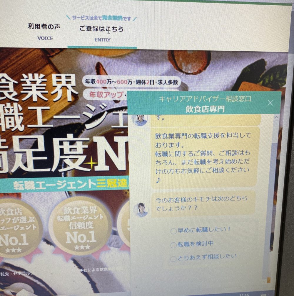 doda転職サイトでは、エージェントの方と電話で現職の相談も乗っていただき、調理師の仕事を探すなら飲食に特化した転職サイトを利用することもおすすめされました。